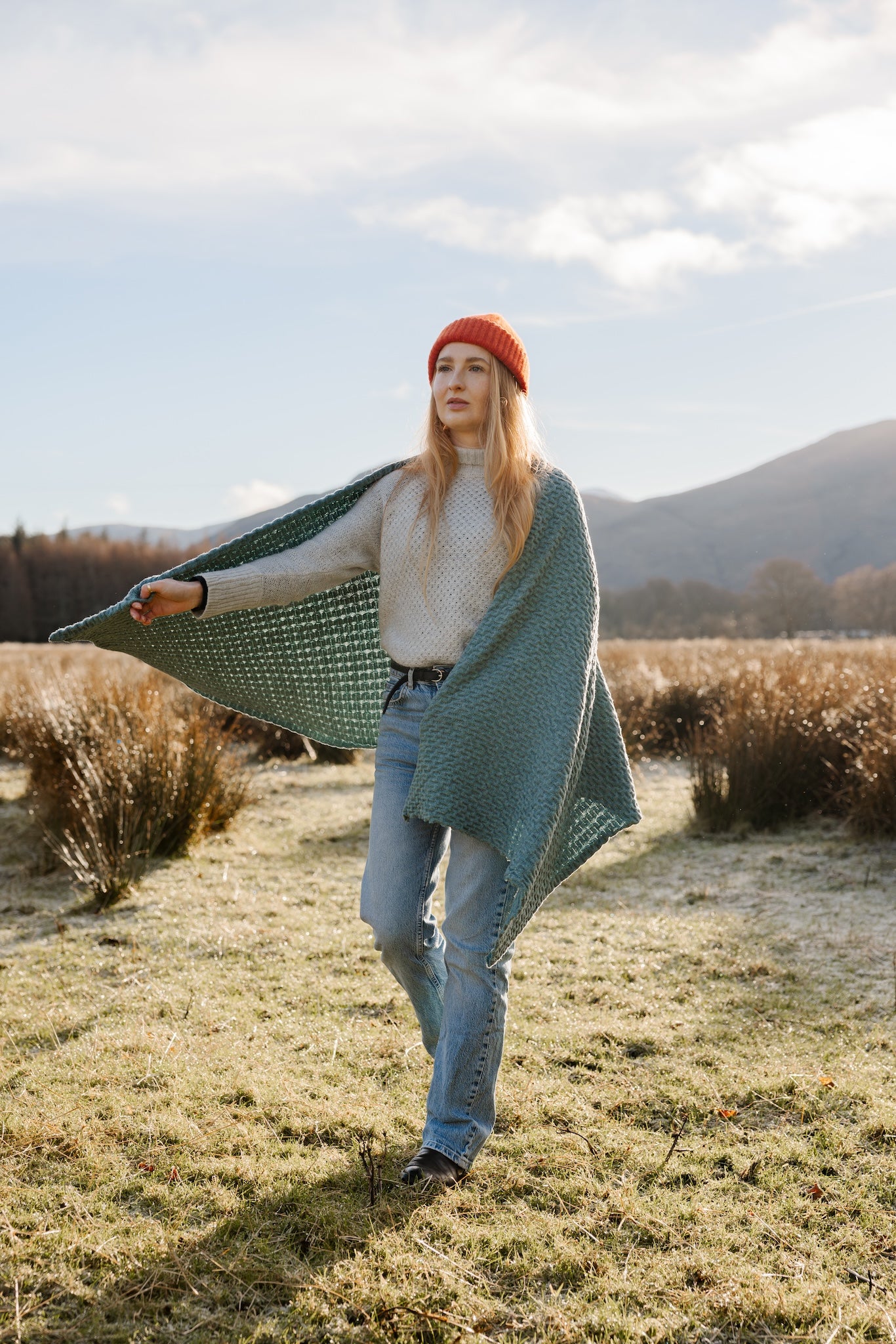 The Feàrna shawl takes on forms found within our Scottish woodlands. The recurring texture that can be found in an alder catkin, acorn or pine cone creates pockets within the wool. These pockets will keep you warm whilst feeling light against the skin. The fearna is perfect to keep close for comfort or to take on any of life’s adventures.